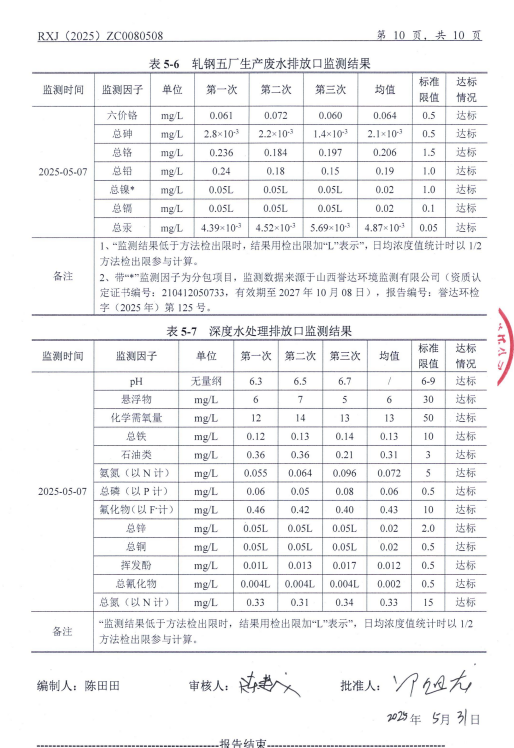 2025年5月份水污染物自行监测